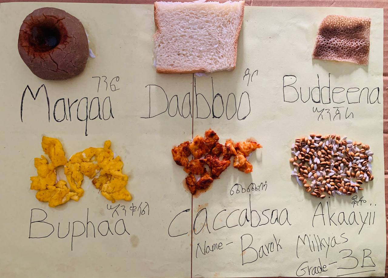 This is an Afaan Oromo school project from grade 3, which is one of the project ideas displayed by NEPS Junior students. Such school projects are a fantastic way for students to showcase their unique creativity, especially following a focused topic.